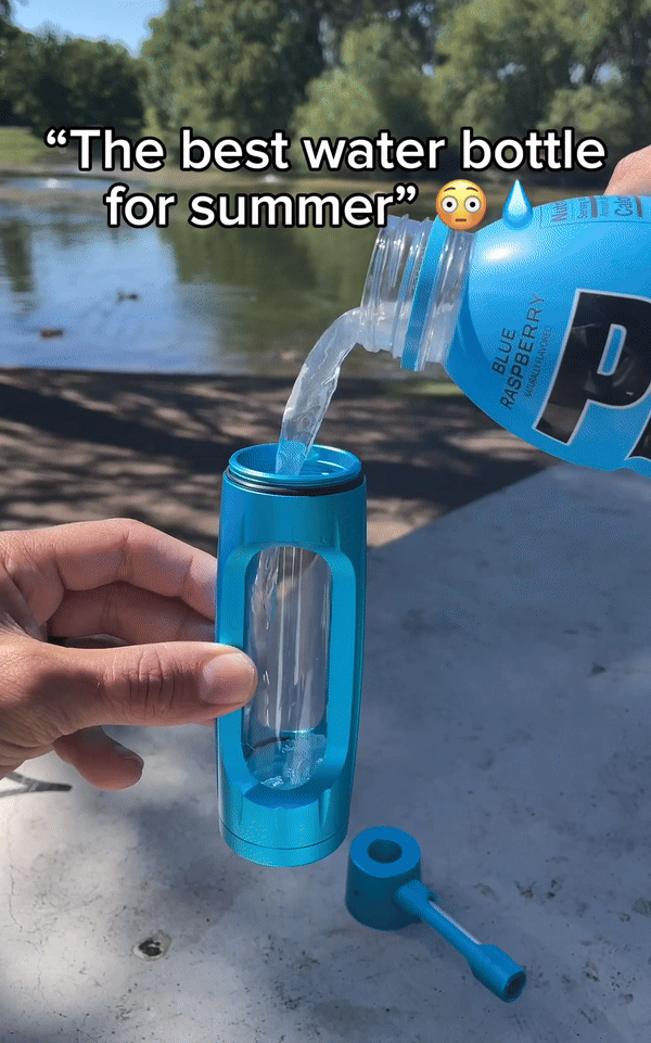 Yes. It’s lightweight, discreet, and shaped like a sleek bottle, and its aluminum shell protects the glass interior during travel.